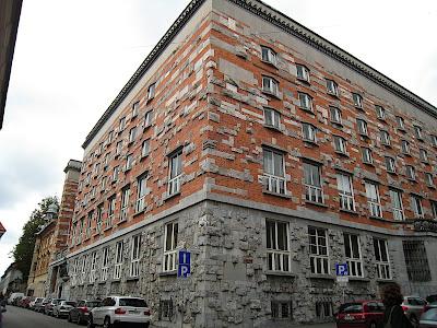 ホテルは駅のバスターミナル前の道をまっすぐ5分程度進んだところにある「シティホテル・リュブリャナ」。「歩き方」によると、07年10月に増築工事が完了したばかりだとか。